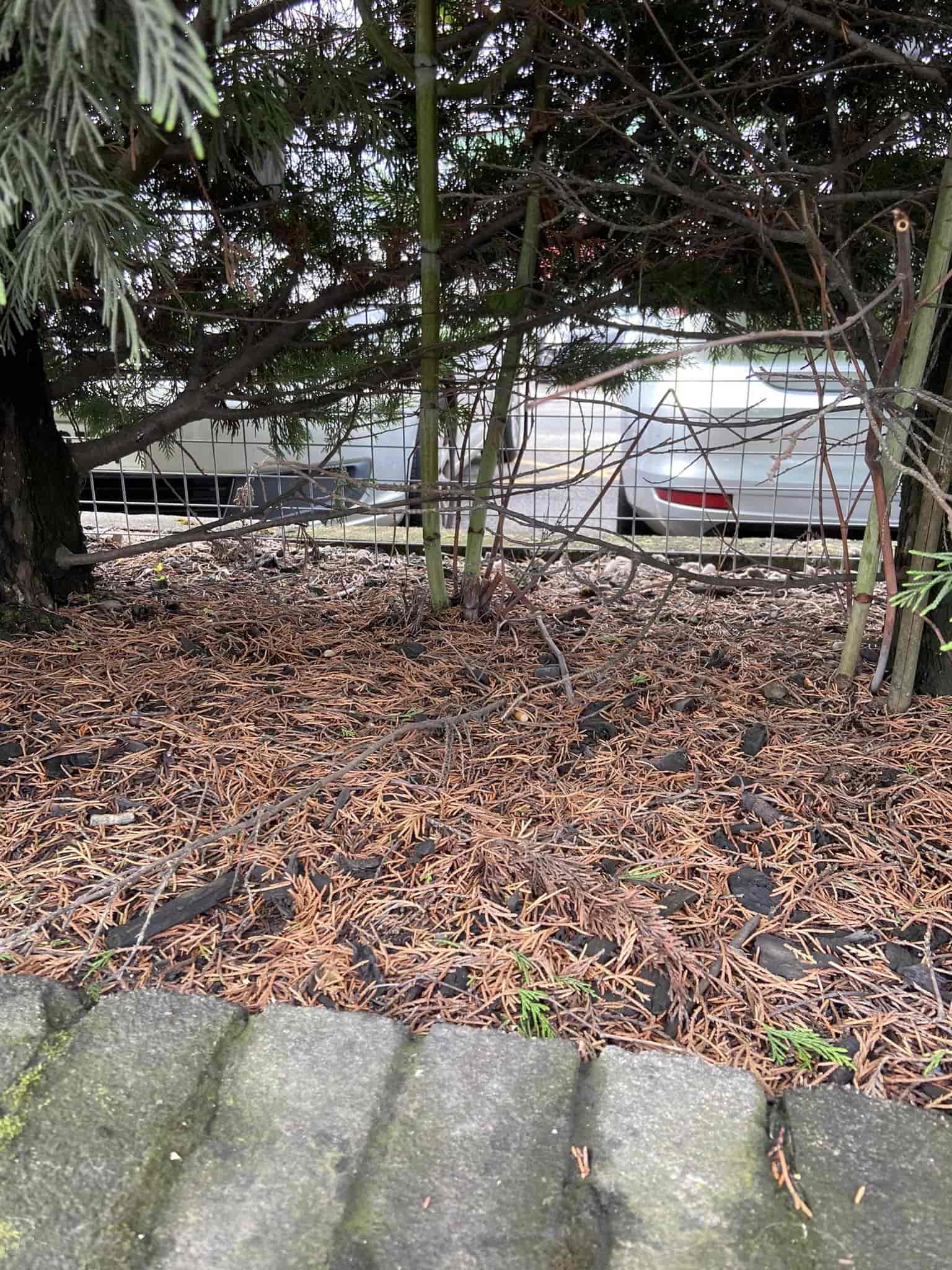 Japanese knotweed is a weed that spreads rapidly. During the winter it dies back to ground level but over the summer months stems that look very much like bamboo appear from deep in the ground, these can then grow up to 7 feet tall, preventing other plant life to grow.
